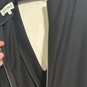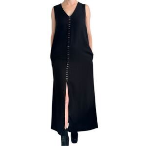 Suno Black Maxi Dress size 2 Front Slit V-neck Silver accent detail Sleeveless