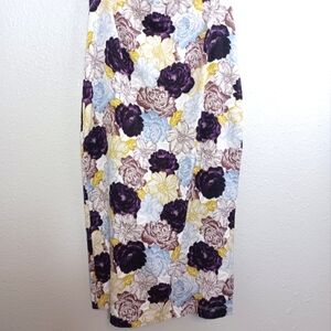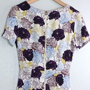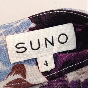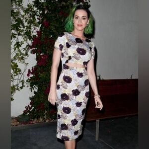 Suno Stretch Silk Blend Cutout-Waist Floral-Print Short Sleeve Midi Dress.