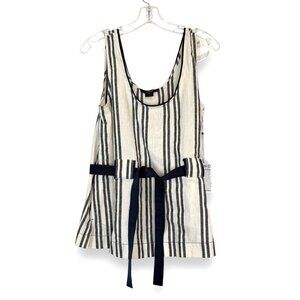 Suno Tank Top Ivory White Gray Stripe Cotton Pockets Sleeveless Cotton Size Medium. New With Tags.