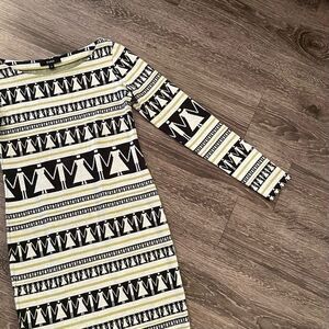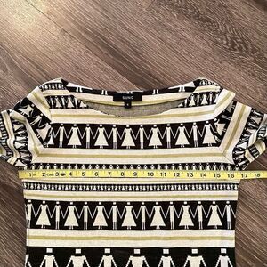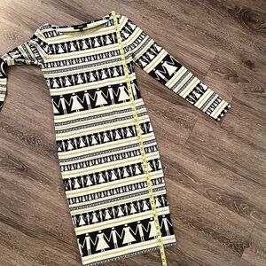 Worn once in excellent condition. Midi length with a slight boat neck. Measurements included in photos