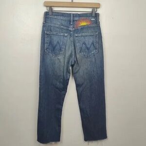 Embrace a sunny style with these cropped jeans featuring a vibrant sunrise embroidery. Perfect for adding a cheerful touch to your casual wardrobe.