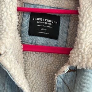 Sunrise Kingdom Denim Sherpa Fleece Trucker Jacket Light Wash Medium Unisex