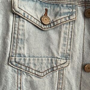 Color is light wash denim.