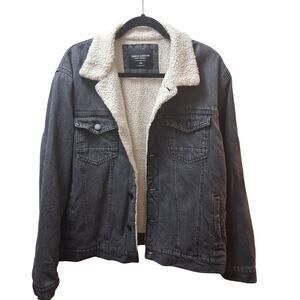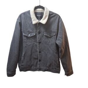 Sunrise Kingdom Men Sherpa Lined Denim Jean Jacket Fleece Rancher Cowboy Black-L