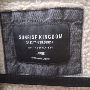 Stay warm and stylish with this Sunrise Kingdom men's denim jacket! This black, sherpa-lined jacket is perfect for ranchers, cowboys, or anyone looking for a cozy and durable outerwear option.