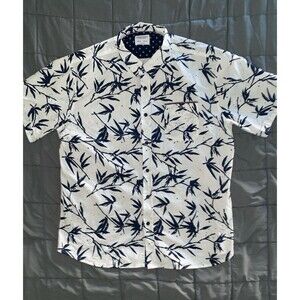 Excellent condition button down casual shirt featuring bamboo leaves all over from Sunrise Kingdom