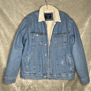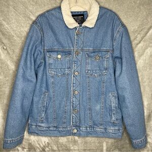 Sunrise Kingdom Sherpa Lined Denim Trucker Jacket Button Down w/ Pockets Medium but can be Unisex