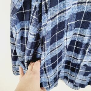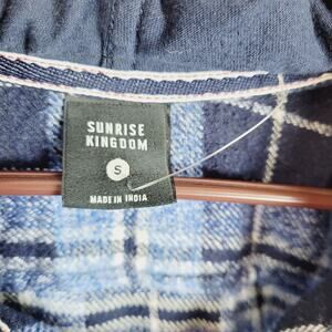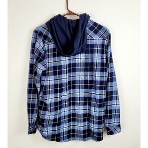 Sunrise Kingdom mens blue plaid hooded button up flannel shirt size small