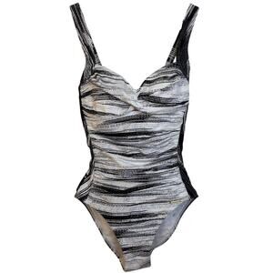 Sunseeker Lets Get Physical One piece Swimsuit Tummy Size 4 control Black White