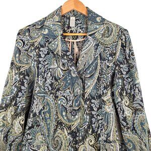 Sunset Cove Paisley Tapestry Blazer Size 14. Blue Black Gold Threads Floral