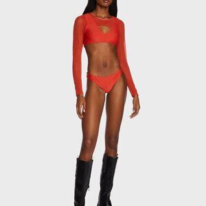 Time to ride those waves as the sun goes down. This set includes a long sleeve cut out top that has a mesh construction and matching low waist bottoms.