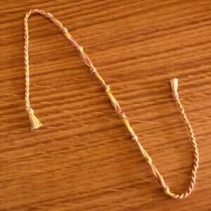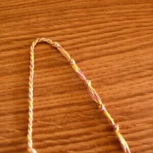 Sunset Knots Woven Bracelet. A handmade bracelet or anklet woven with pink and yellow colors. A friendship or statement bracelet perfect for this summer! Approx. 9 inches/ 30 centimeters long.