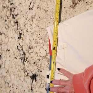 Sunset Rd, size 4, white capri pants, with tags and extra buttons,some stretch to fabric, 5 pocket, 2 front side pockets, tiny pocket on front, back pockets flap and button all working pockets, one small stain
