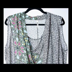 Sunset Rd Womens Multicolor Floral Sleeveless Layered Tunic Top XL EUC