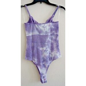 Sunset & Sixth 70987A04 Women's Sz Medium Purple Tie Dye Ribbed Thong Bodysuit