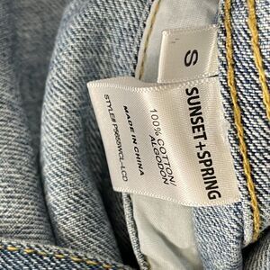 Sunset + Spring Denim Jacket Womens Size Small Ruffle Trim Blue