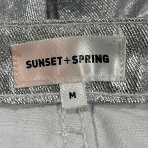 Sunset + Spring Silver Metallic High Waisted Pencil Mini Denim Jean Skirt Size M