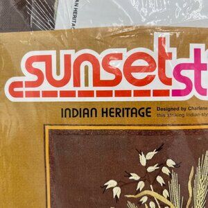 Vintage 1976 Santa Fe Heritage Sunset Stitchery kit. The kit includes wool for crewel embroidery depicting Southwestern heritage. Perfect for crafters and embroidery enthusiasts.