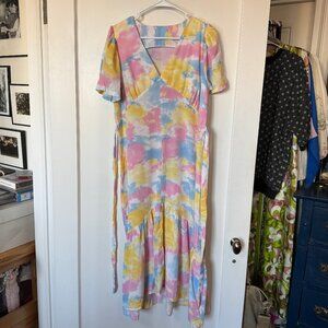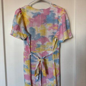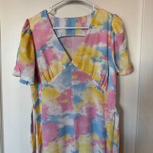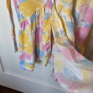 Sunset Summer Dress Bottom hem is a little shorter in front BUST: 20" WAIST: 19"" HIPS: 20" LENGTH: 46" in front / 48.5" in back SLEEVE: 9.5"