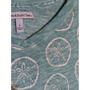 Sunsets & Sweet Tea Womens Silver Sand Dollar S Soft Cotton Blend Seafoam Green