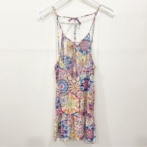Sunsets Swimwear Printed Riviera Dress Strappy Lace-Up Ruffle Flounce Hem