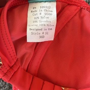 Sunsets bikini set bottoms size med top 36d cup with underwire. Coral color with pattern on the bottoms.