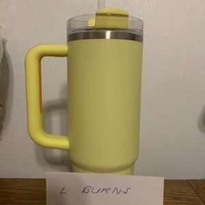 This is a 30-ounce Stanley Quencher in the color Sunshine. It is in like-new condition. It has only been used once or twice, and it has been hand washed.