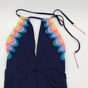 Sunshine 79 Mio High Neck Keyhole One Piece Swimsuit Size 8 Navy Blue Rainbow