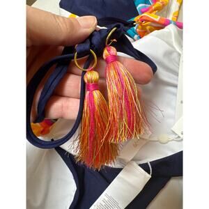 Plunging neckline with tie shoulders with tassels