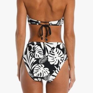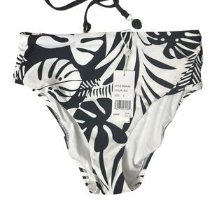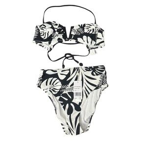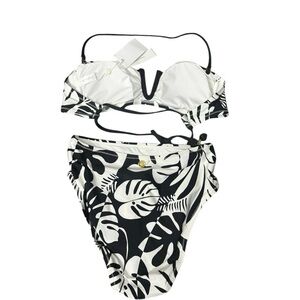 Embrace the summer with this chic black and white leaf print bikini. Perfect for beach days and poolside lounging.