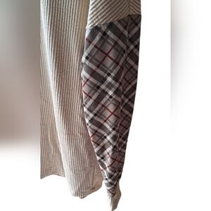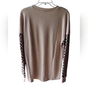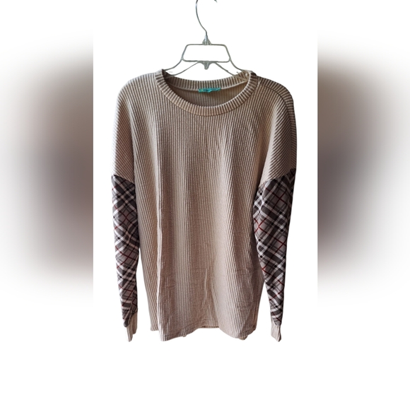 NWOT Size S very oversized will also fit medium and large Stylish beige sweater featuring plaid sleeves Burberry inspired perfect for casual wear. PTP 17-30