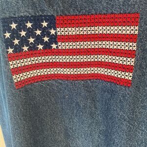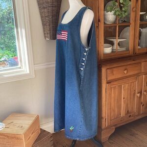 Sunshine Apparel Denim Embroidered USA 100% Cotton Flag Maxi Dress Size 3X