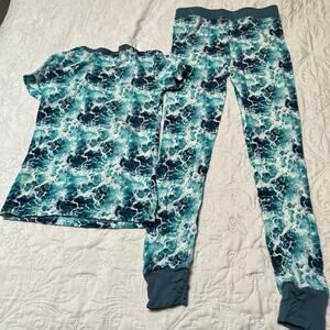 Sunshine Luckies two piece pajama set in super soft bamboo blue Happiness Comes in Waves print. Very good condition, light wear. Size 5T.