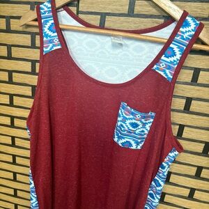 Sunshine & Rodeos Burgundy Aztec Print Tank Size Large