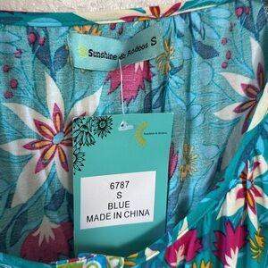 Sunshine & Rodeos Women’s S Floral Dress Tie Waist Button up Pockets Round Neck