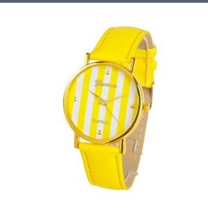 Leather wrist band. Nice big sized face for ease in seeing the time. Beautiful matching stripes run through the wrist face. Brand New in wrapping. NEW Battery easy to change when needed. All the colors are gorgeous and why not have a watch to match every outfit and go with your other jewelry?