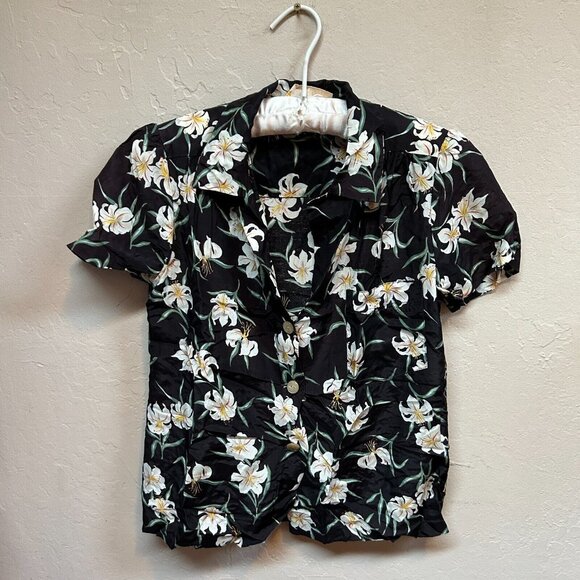 Sunshine by Sherry Holt Womens Hawaiian Shirt Small Retro Floral Aloha Top Black