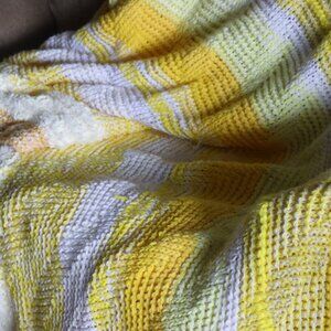 Sunshine yellow and white unique handmade large knitted soft cozy blanket 9'X5'