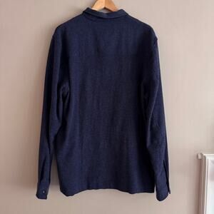 Sunspel England Wool Blend Button Front Flannel Shirt Navy Blue Size Large NEW