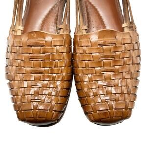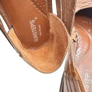 Pre-owned women’s Sunsteps hand woven leather huaruche slip-on sandals.