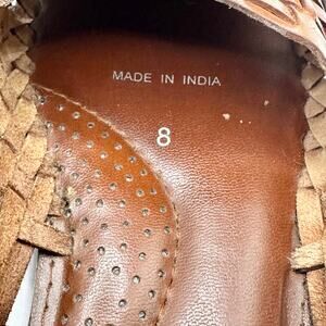 Sunsteps | Women | Golden Tan Hand Woven Leather Huaruche Slip-On Sandals | Sz 8