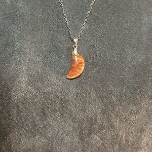 Sunstone crescent moon pendant necklace. Is on a silver 925 bail and comes with a 20” silver 925 plated box chain. The moon is about 1/2” long and wide. It’s a small pendant but has a beautiful chatoyance.