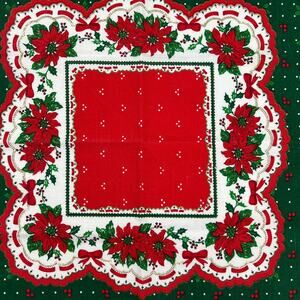 Sunweave Linen Corp Fabric Cloth Napkins Set of 4 Holiday Poinsettia Red Green