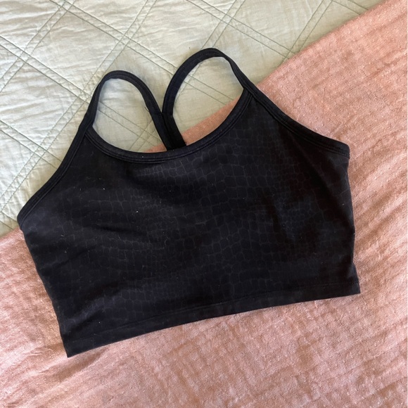 Black Sunzel sports bra/crop. Reptile print. No padding.