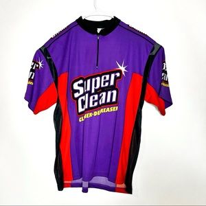 Super Clean Sz L Biking Jersey Polyester Jersey Degreaser Advertising EUC