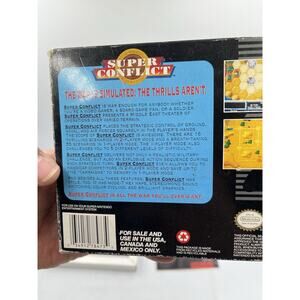 The Super Conflict Complete In Box for the Super Nintendo is a strategy game released in 1993 by Vic Tokai, Inc. This version includes the manual, providing players with a complete gaming experience. With retro gameplay and strategic challenges, this classic game offers hours of entertainment for fans of the Super NES platform.