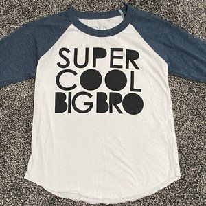 Super Cool Big Bro Gray/White/Black Baseball Tee with 3/4 Sleeves - Worn Once - Size 8