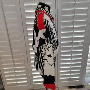 Vintage geometric black/white/red tapered asymmetrical zip jacket by Dina Bar El for Hi Tech. This is pure 90's but is still so much fun!