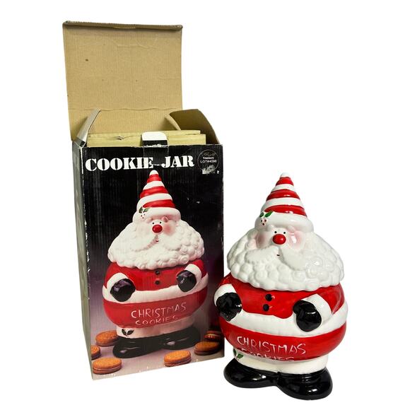 Super Cute Ceramic Santa Cookie Jar in Original Box