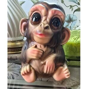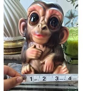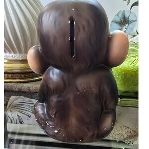 This adorable ceramic monkey bank is looking for a new home. Don't miss out on the opportunity to add this unique piece to your collection!